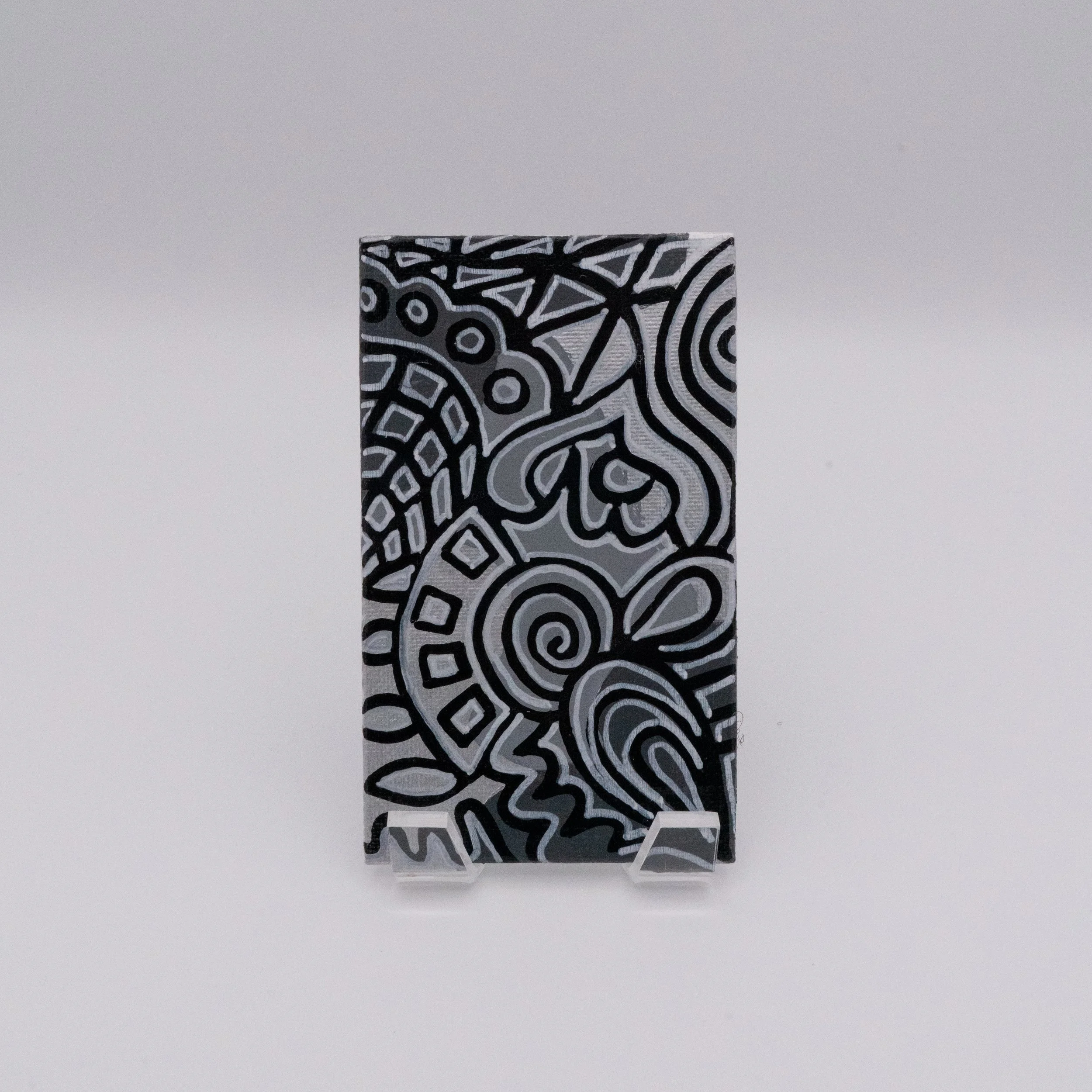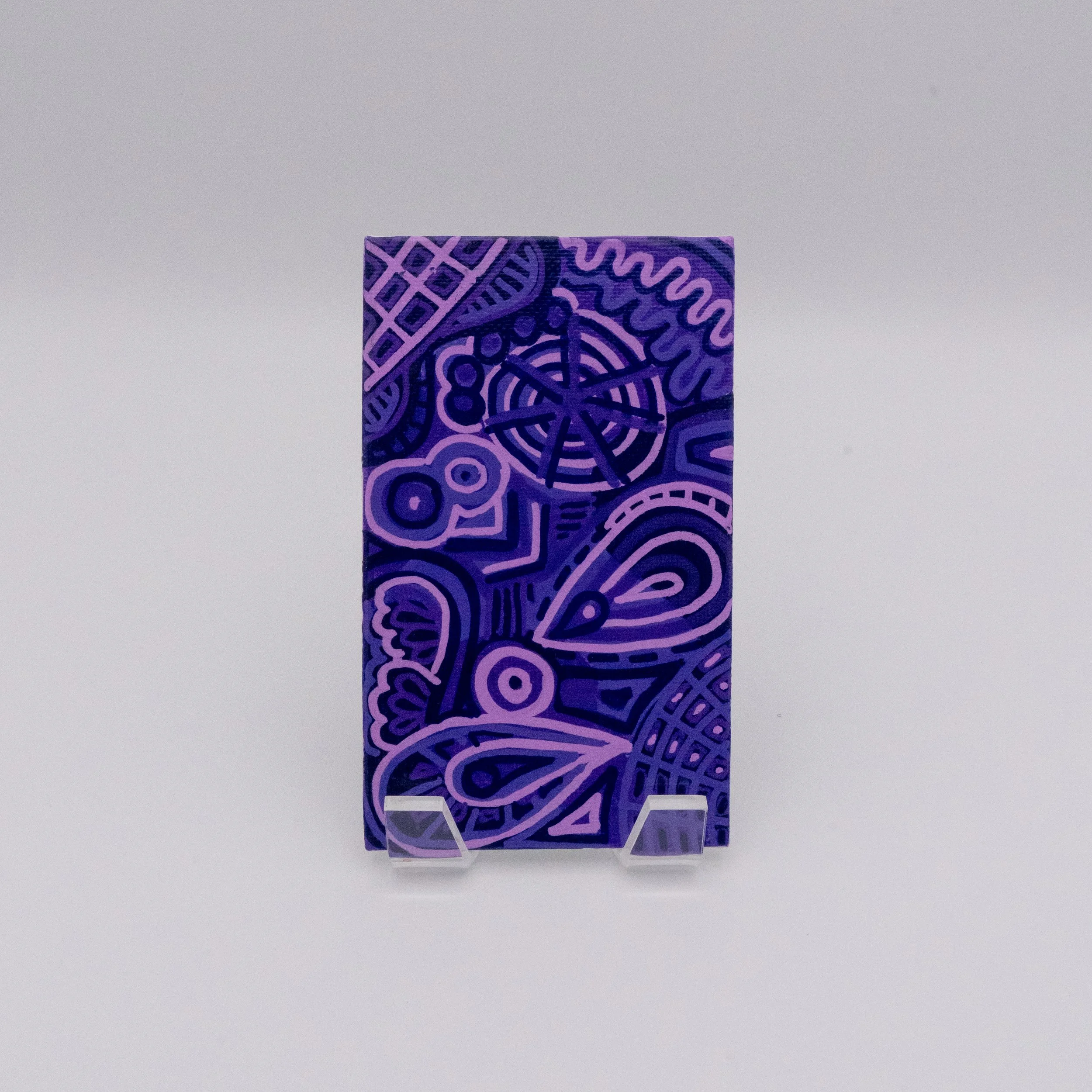 All magnets are canvas panels, enhanced with acrylic paint and paint pens, and finished with gloss varnish.